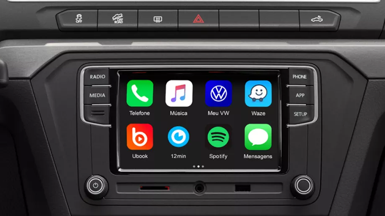 O sistema multimídia infotainment possui tela colorida de alta definição e possui conectividade com smartphones por meio da tecnologia App-Connect.